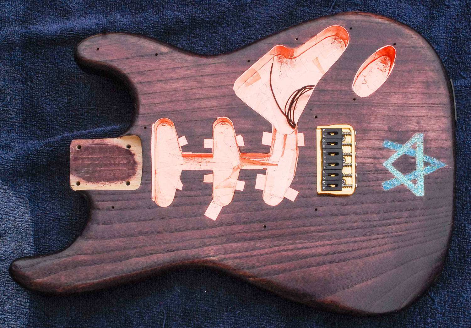 If your instrument "hisses" or makes other electronic noise when it's not being played, getting it shielded with copper tape can really cut down on electrical noise (see image below).